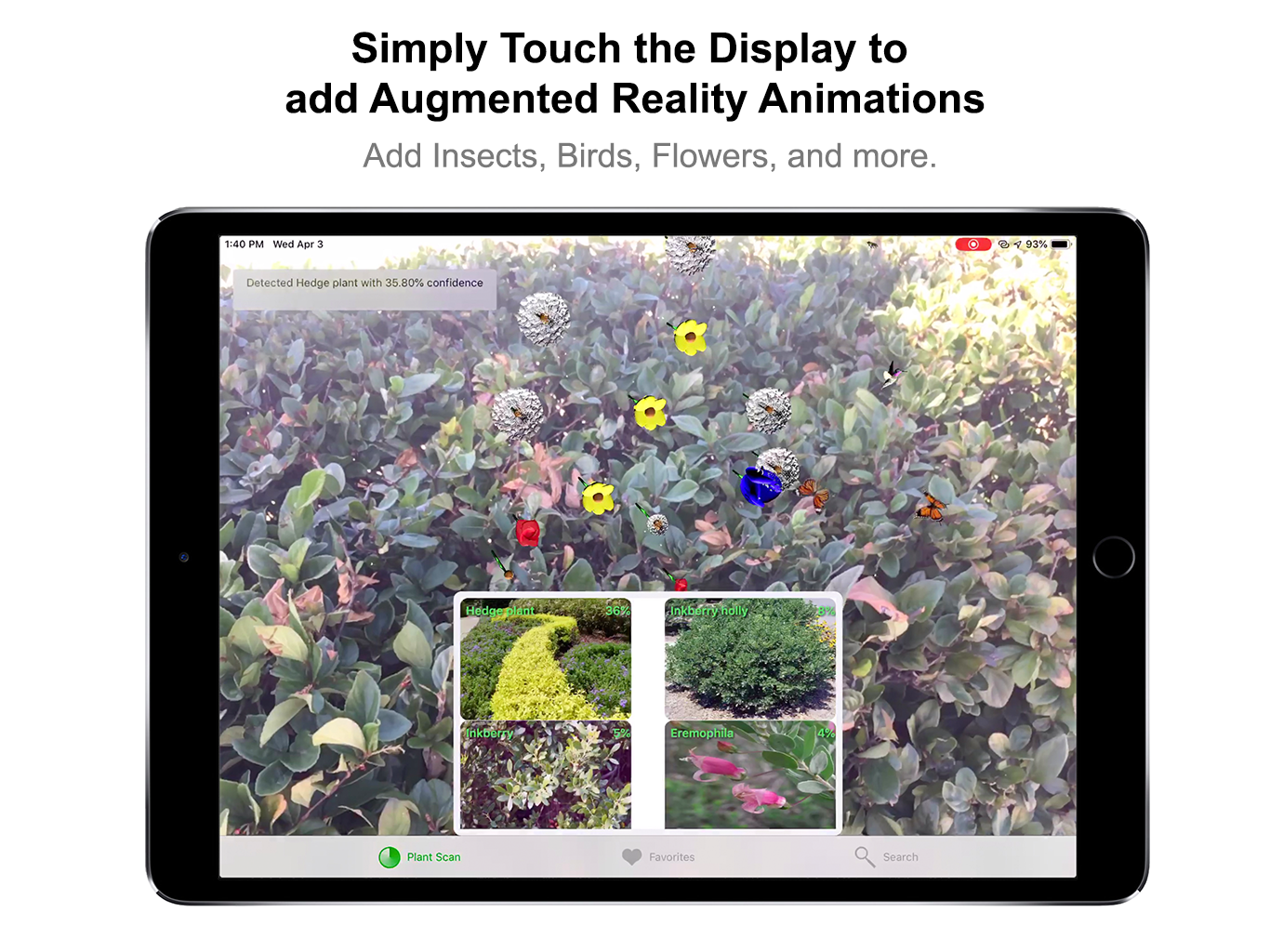 Introducing Plant Scan Pro: The easiest to use and most advanced Plant Identification app. Plant Scan Pro offers Photo-less Scanning of plants, Augmented Reality animations, best in class A.I. technology, and far more detailed information than any other app. To use Plant Scan Pro, simply hold your device in front of the Plant and scanning will happen in real-time, and if you see a Plant that is a good match, simply touch it to view more information about it. In addition to Photo-less scanning, Plant Scan Pro can identify entire Families, Genuses, and Species: Including Plants, Bushes, Trees, Flowers, Fruits, Vegetables, Nuts, Mushrooms, Cacti, and more! In addition to real-time scanning, simply Touch the Display to add animated Augmented Reality Insects and Birds; and if Plant Scan Pro detects a horizontal/vertical surface (Such as a Bush or Grass or Table) Touch the Display to add Augmented Reality Flowers to make Bushes and Grass beautiful!